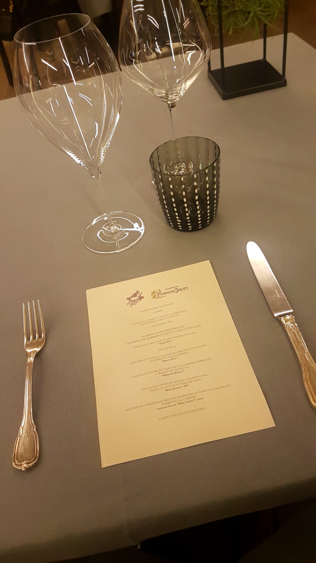 Il Ristorante Massimo Camia (1 Stella Michelin), oggi situato nella nuova sede di Novello, ha da sempre rappresentato un punto di riferimento per la cucina d'autore nelle Langhe. Quando ho avuto il piacere di visitarlo nel 2020, in occasione di una serata dedicata allo Champagne Perrier-Jouët, si trovava ancora nella storica location accanto alla cantina Damilano, a Barolo. La serata è stata l'occasione per esplorare il dialogo tra la cucina dello chef e le cuvée della maison, attraverso un percorso di abbinamenti pensati con attenzione e sensibilità.